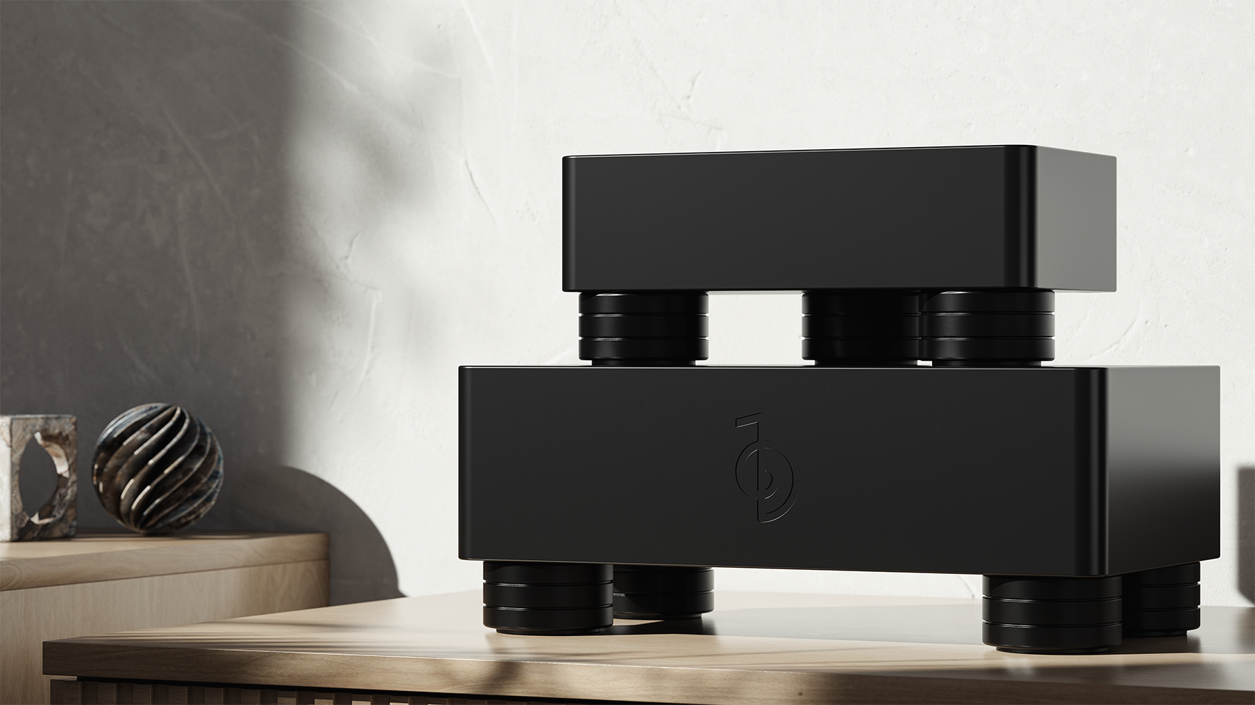 As the result of an exciting design collaboration with Stack Audio, we are delighted to be able to offer an optional upgrade from our standard aluminium/silicone isolation feet to a specially commissioned threaded version of the excellent AUVA EQ isolators.