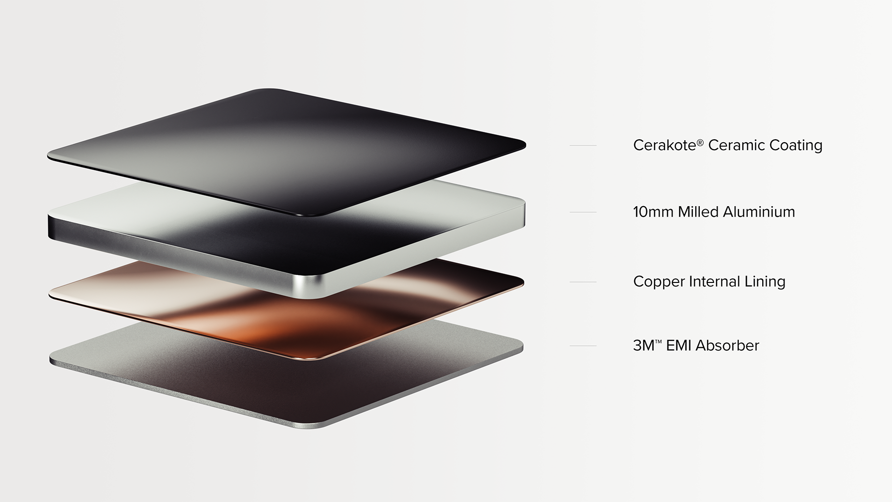 Our 10mm aluminium cases are milled from a single billet of aluminium to the tightest of engineering tolerances for optimal performance and superb aesthetics.